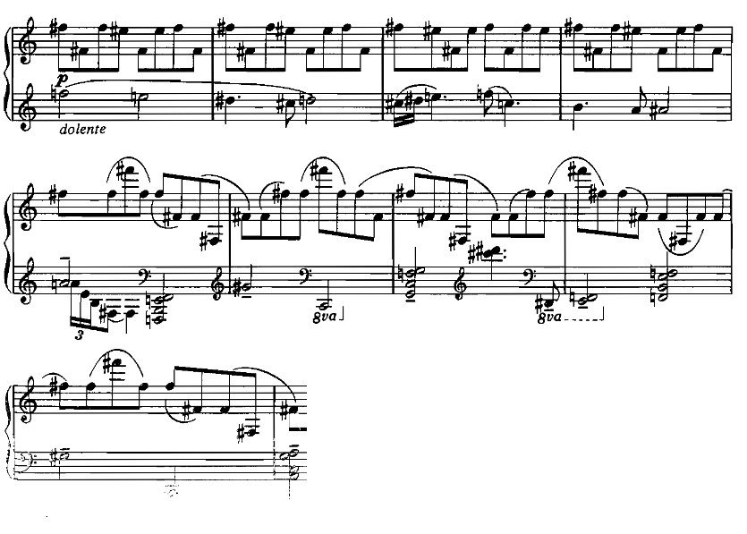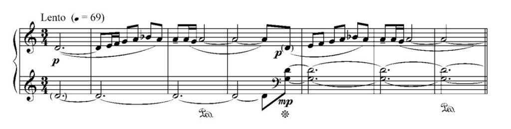 Simbolismo da cruz. Sonata para piano, 2º andamento, cc. 5-6